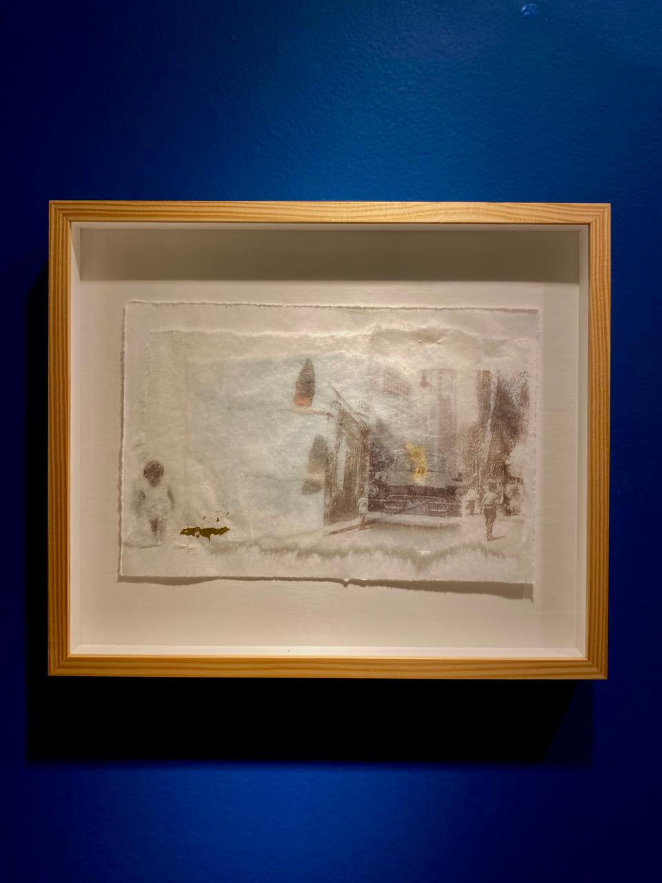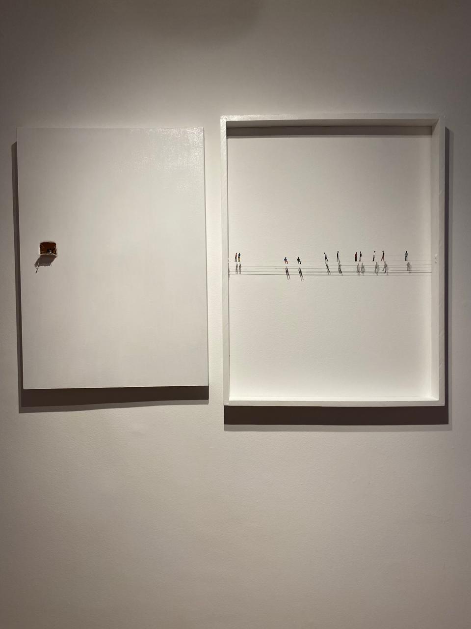 Memória pessoal e memória coletiva: Marcia Gadioli e Edilaine Brum. Marcia conecta a história da cidade e suas transformações às alterações que essas mudanças provocam nos indivíduos, utilizando técnicas como frotagem e transferência de imagem em papéis de diferentes qualidades e gramaturas. Edilaine, por sua vez, trabalha com memória pessoal, afetos, subjetividade e o feminino, trazendo objetos de outros tempos em composições que funcionam como disparadores de memórias.