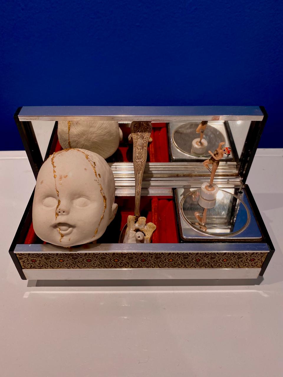 O feminino, corpo e performance: Lucimar Bello. A artista, com vasta trajetória na arte, interesse pelo feminino e pela literatura, aborda o tema por meio do corpo em movimento e de pequenas esculturas brancas alojadas em caixinhas de madeira.