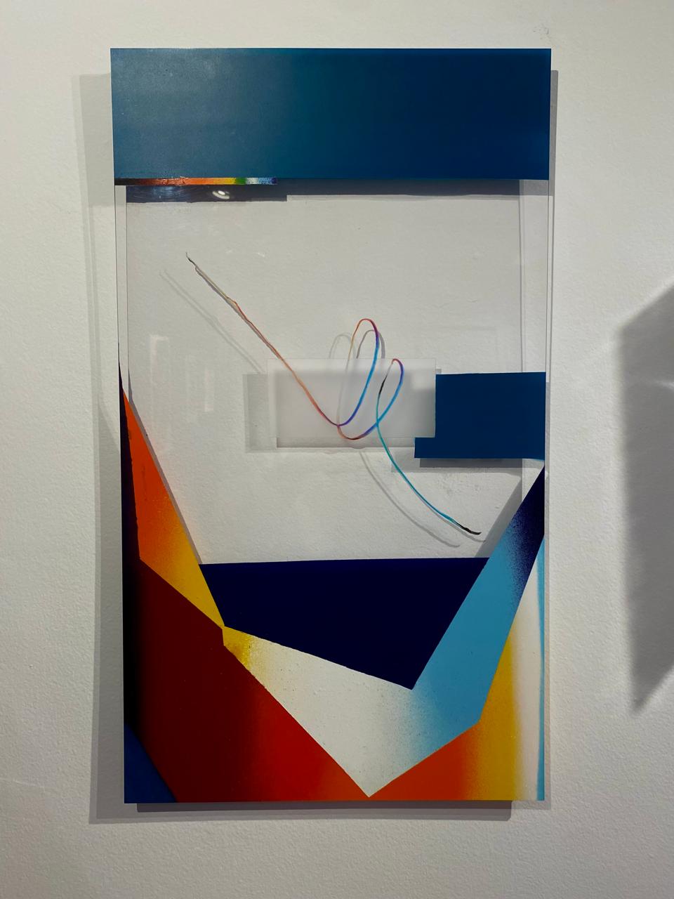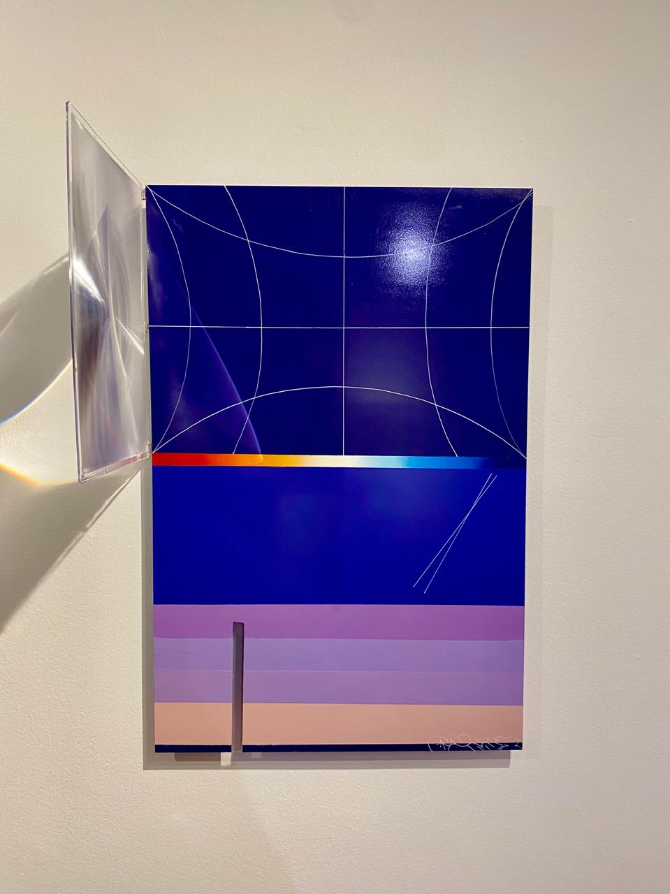 Sobre ciência, luz e poesia: Dee Lazzerini e Gabriel Porfírio. Ambos partem de universos distintos, mas se encontram na ciência – na ótica (Gabriel) e na engenharia (Dee) – o articulador de suas explorações estéticas. Dee apresenta um trabalho laborioso de cor, luz e geometria, apropriando-se das características do material, o alfinete. Já Gabriel, de maneira singela, mas não menos eficaz, convoca a luz por meio da lente fresnel e das transparências do suporte de acrílico, revelando a composição da luz.