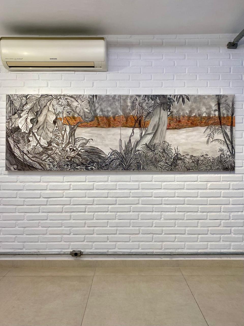Na sala II, no desenho de paisagem realizado com carvão e pastel, Isa de Paula Santos reinterpreta os desenhos dos viajantes, intervindo-os com elementos contemporâneos que afetam de forma violenta a paisagem atual de diversas regiões do Brasil.
