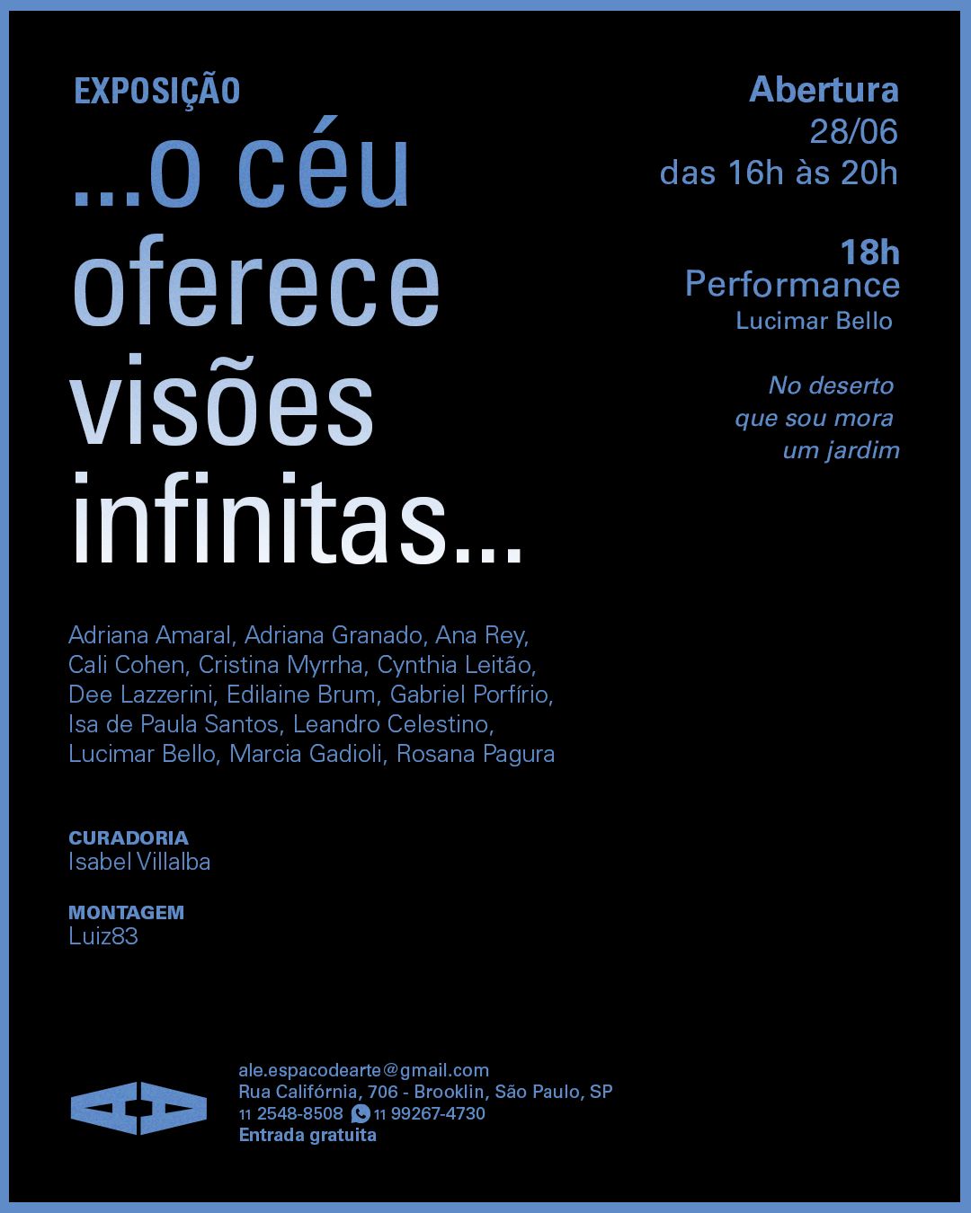O Alê Espaço de Arte tem o prazer de receber a exposição coletiva …O céu oferece visões infinitas…, corolário do curso Fala de Artista, ministrado pelas professoras Magnólia Costa e Ana Avelar durante o primeiro semestre de 2025.
